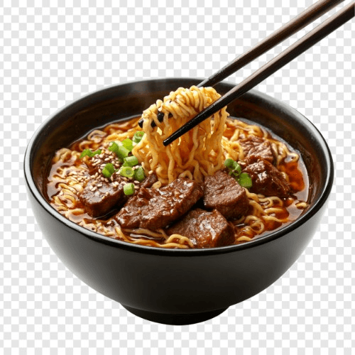 Rice or egg noodles with beef stew