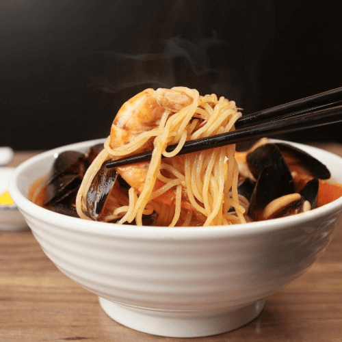 Rice or egg noodles with seafood soup